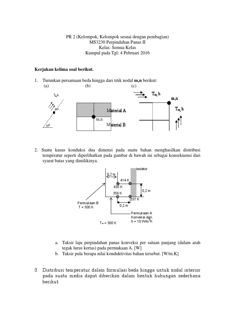 18 contoh soal sejarah kelas x semester 1 beserta jawabannya 1 istilah sejarah berasal dari bahasa arab yaitu syajaratun yang artinya. Air mengalir dalam pipa dengan diameter dalam 0,0475 m pada kecepatan 1,5 m/s. Salah satu materi dalam fisika tentang konveksi adalah sebagai berikut. Temperatur permukaan sisi luar jendela kaca kacar tt q 21 atau c3c2,88757 c/w)0,00321w(471,161664,4 )( oo o 12 kacarqtt contoh soal 2.2: Perpindahan panas oleh listrik menuju setrika yang mengakibatkan setrika menjadi panas.