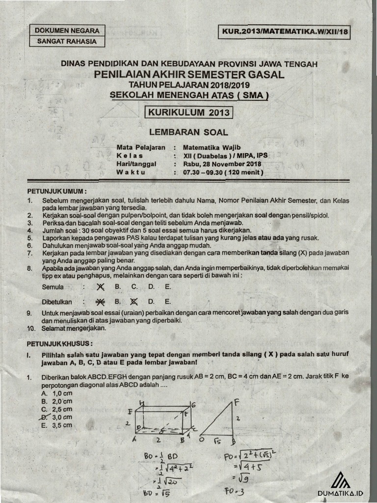Soal Pas Matematika Peminatan Kelas Xii Tahun 2018 2019 Pdf from imgv2-1-f.scribdassets.com Maybe you would like to learn more about one of these? We did not find results for: Soal pas matematika wajib kelas 10. Check spelling or type a new query.