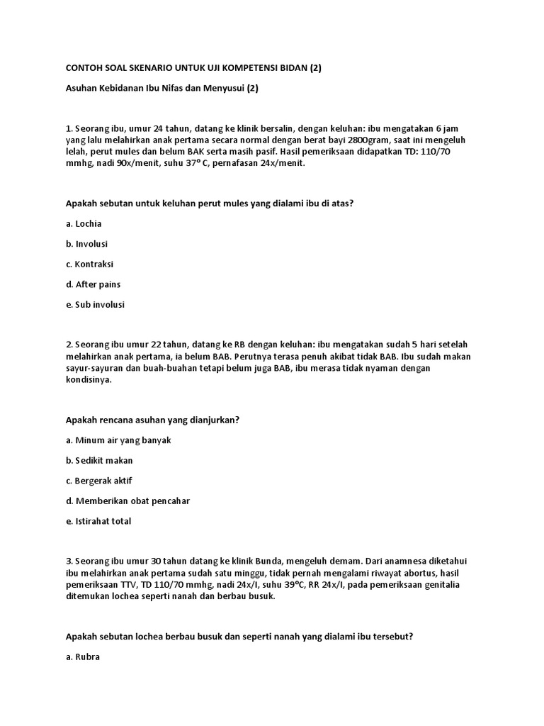 Pdf soal uji kompetensi perawat dan kunci jawaban soal uji kompetensi perawat d3 dan pembahasannya pdf soal uji kompetensi. Soal ukom bidan 2021 dan jawabannya edisi 73 terdapat 5 buah latihan uji kompetensi bidan tahun 2021 2022 2023 disertai pembahasan lengkap pdf doc ukom kebidanan sebuah blog yang membahas mengenai contoh soal latihan uji kompetensi (ukom) kebidanan beserta kunci jawabannya dan juga pdf, doc terlengkap 2019, 2020, 2021, 2022 Contoh formulir rawat jalan dapat dilihat pada lampiran 5 rm 1 sd 3. Barang siapa dengan sengaja melanggar dan tanpa hak melakukan perbuatan sebagaimana dimaksud dalam pasal ayat (1) atau pasal 49 Komunitas soal uji kompetensi akuntansi soal uji kompetensi analis kesehatan 2018 soal uji kompetensi bidan.